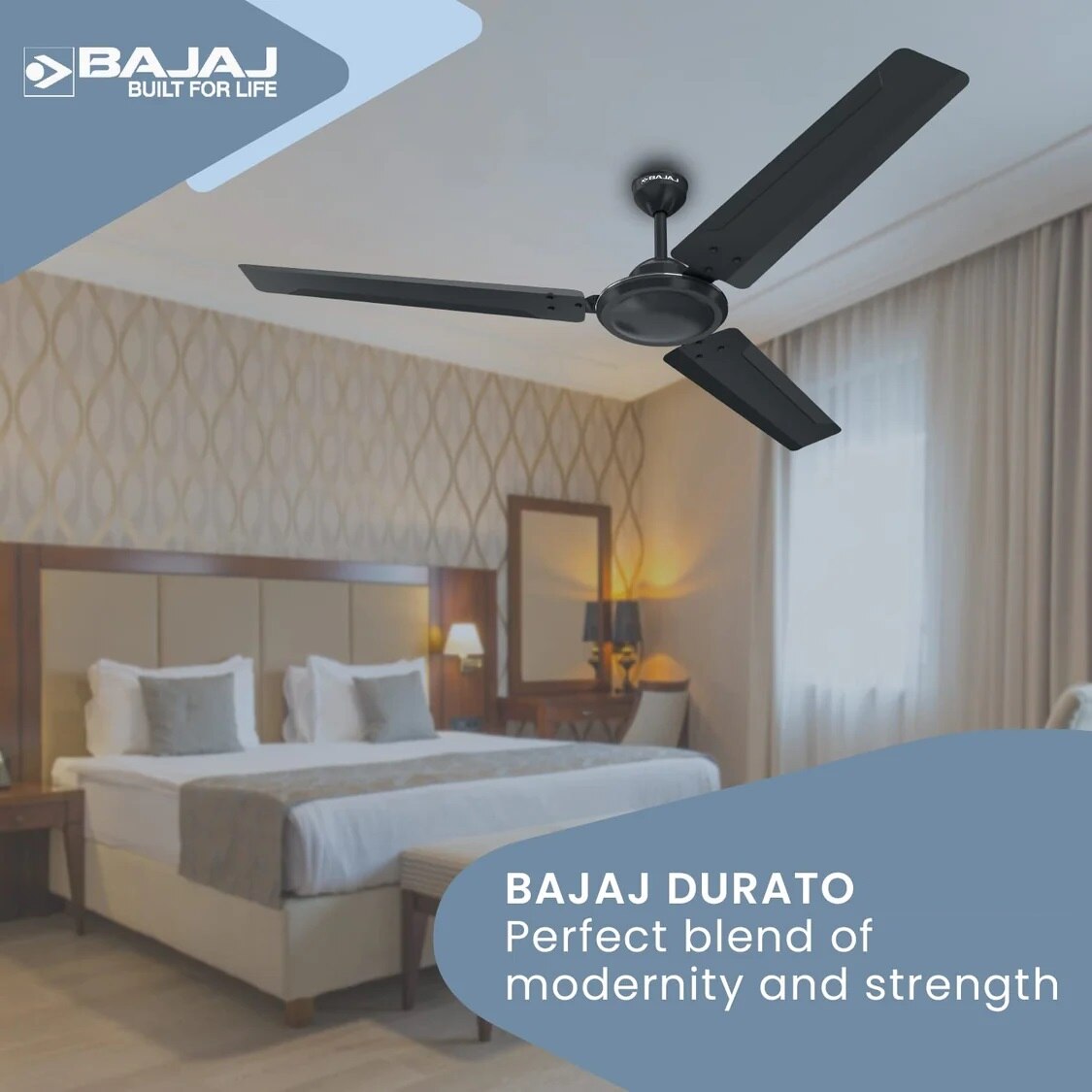 The Bajaj Eurostos 1200 mm BLDC 5 Star Ceiling Fan is designed to provide powerful cooling while maintaining excellent energy efficiency. Built with advanced BLDC motor technology, this fan consumes significantly less electricity compared to conventional fans while still delivering strong airflow for everyday comfort. Its telescopic seamless canopy helps reduce air-cutting noise, ensuring quieter operation. The adjustable canopy design also simplifies the installation process, making it convenient for different ceiling setups. With its sleek look and durable build, this fan is suitable for bedrooms, living rooms, offices, and other medium to large spaces. Key Features & Specifications Sweep Size: 1200 mm β Ideal for medium to large rooms Energy Rating: 5-Star BLDC energy-efficient fan Speed: Up to 320 RPM for effective air circulation Air Delivery: Up to 225 CMM for strong cooling performance Power Consumption: 35 Watts at full speed Low Speed Consumption: Only 6.5 W at Speed 1 for maximum power savings Motor: High-efficiency BLDC motor with 100% copper winding Noise Reduction: Telescopic seamless canopy helps minimize air-cutting noise Body & Blades: Corrosion-resistant materials for durability and long life Operating Modes: Speed Mode, Sleep Mode, and Breeze Mode for customized comfort Indicator: Soft colour indication lights for different operating modes Warranty: 2 Years on Product and 5 Years on Motor Why Choose Bajaj Eurostos BLDC Ceiling Fan? β Advanced BLDC technology for reduced electricity consumption β Powerful airflow with smooth and quiet operation β Smart operating modes for enhanced comfort β Stylish design that complements modern interiors β Long motor warranty for dependable performance The Bajaj Eurostos 1200 mm BLDC Ceiling Fan offers an excellent combination of energy efficiency, quiet performance, and modern features, making it a reliable cooling solution for contemporary homes and workspaces.